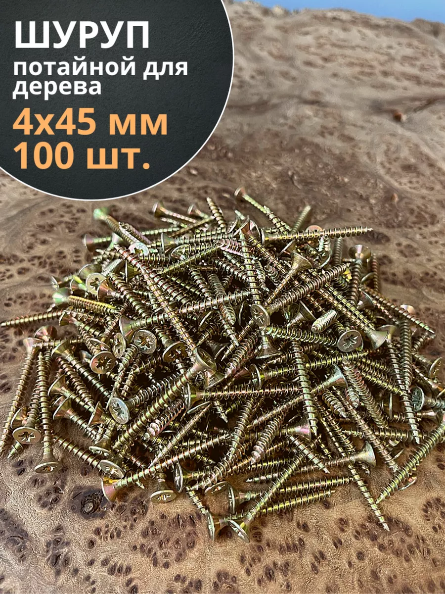 Шуруп саморез потайной для дерева 4х45 ЖЦ, 100 шт.