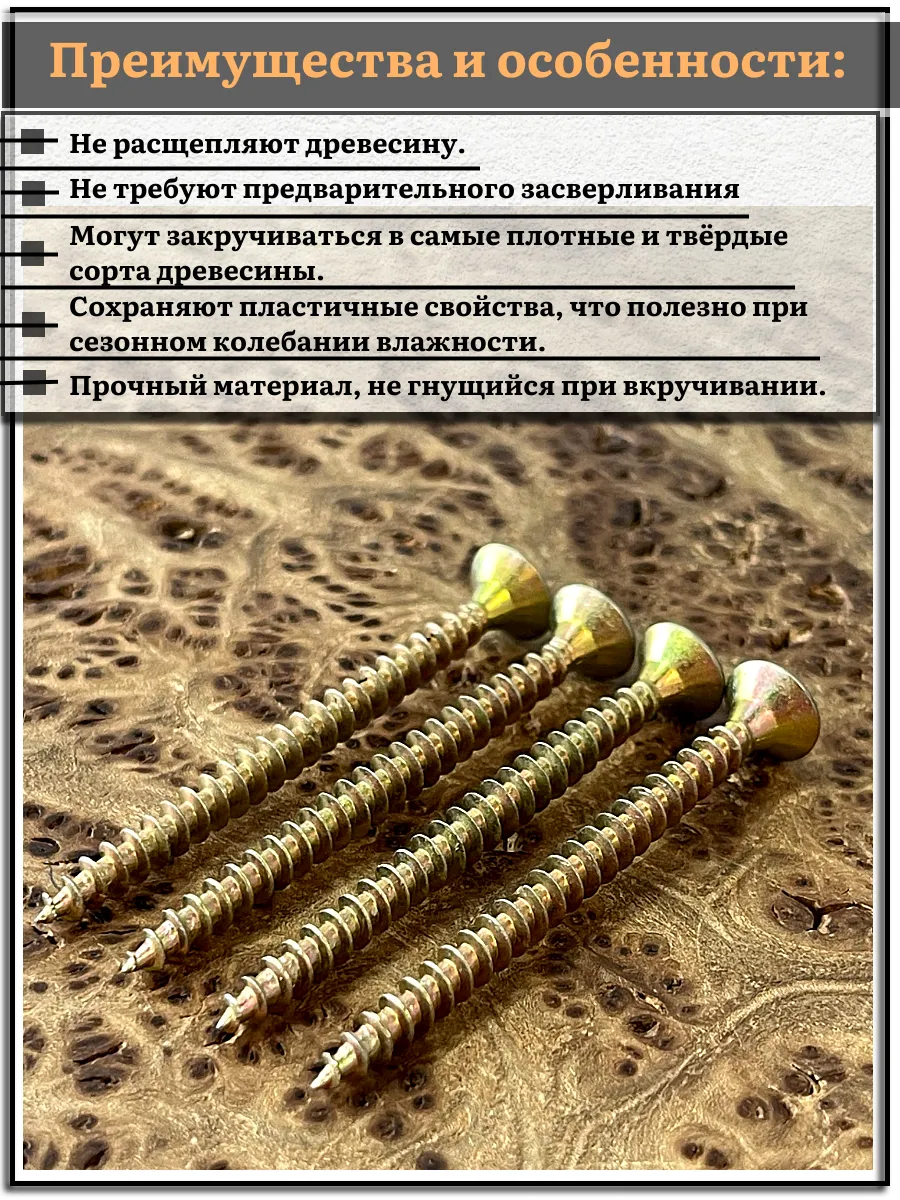 Шуруп саморез потайной для дерева 4х70 мм, желтый цинк, 1 кг.