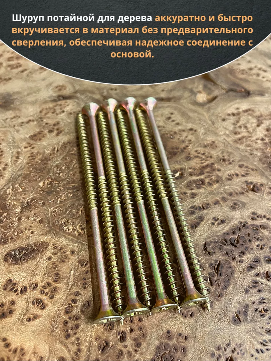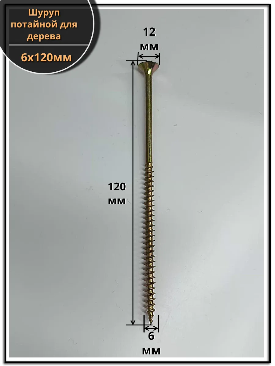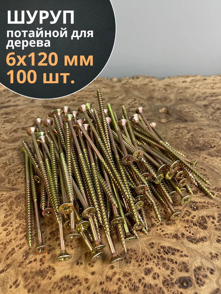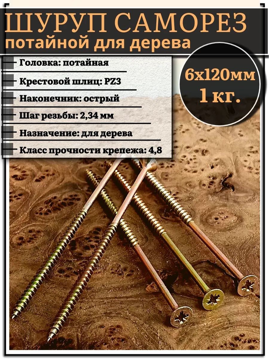 | Шуруп саморез потайной для дерева 6х120 мм, желтый цинк, 1 кг. | B04006012063R07кг | 1 шт. |