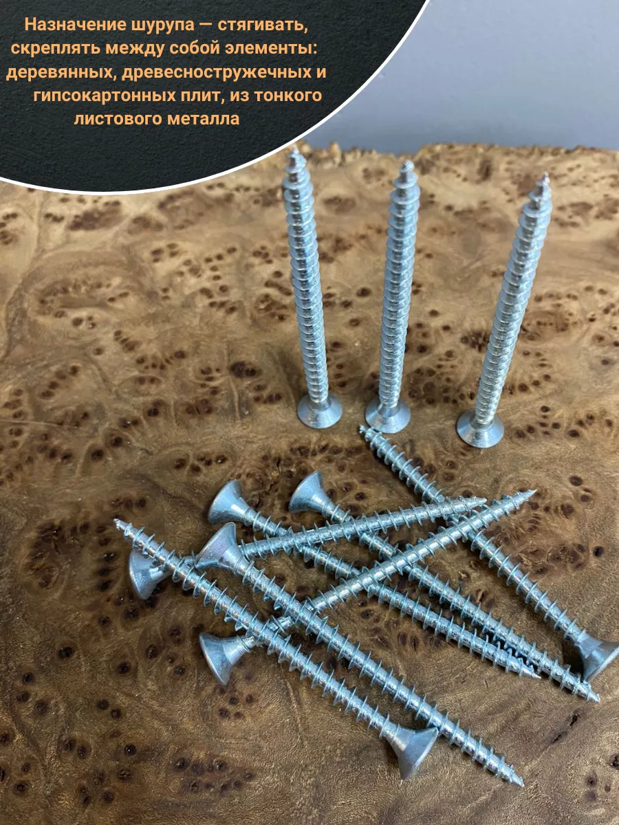 Шуруп — это металлический крепеж, представляющий собой стержень с головкой и острым наконечником. Универсальность проявляется в конструкции и области применения. Назначение шурупа — стягивать, скреплять между собой элементы: деревянных, древесностружечных и гипсокартонных плит, из тонкого листового металла.