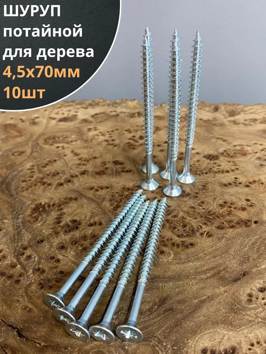 Шуруп саморез потайной для дерева Б 4,5х70 БЦ, 10шт.