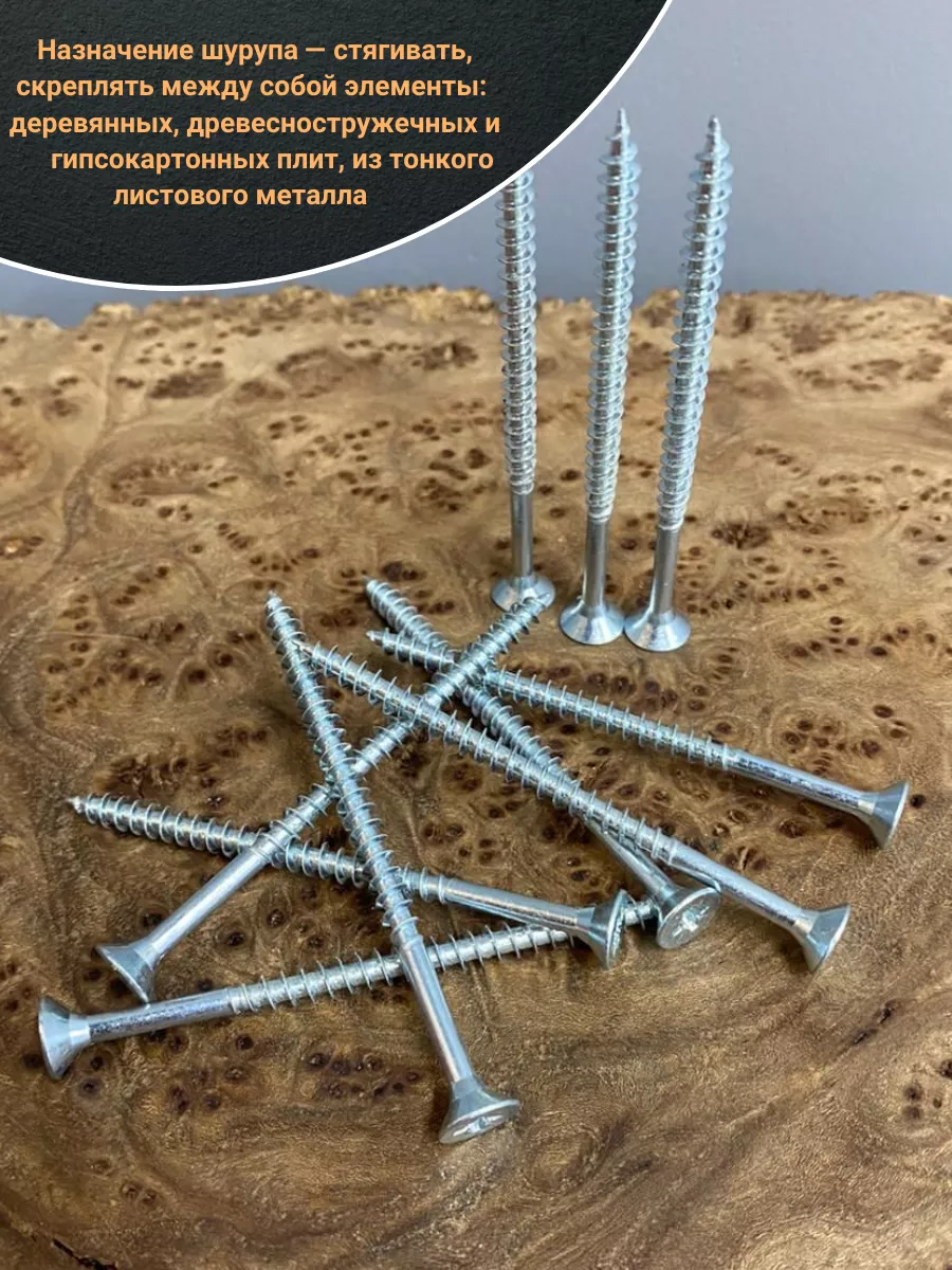 Шуруп — это металлический крепеж, представляющий собой стержень с головкой и острым наконечником. Универсальность проявляется в конструкции и области применения. Назначение шурупа — стягивать, скреплять между собой элементы: деревянных, древесностружечных и гипсокартонных плит, из тонкого листового металла.