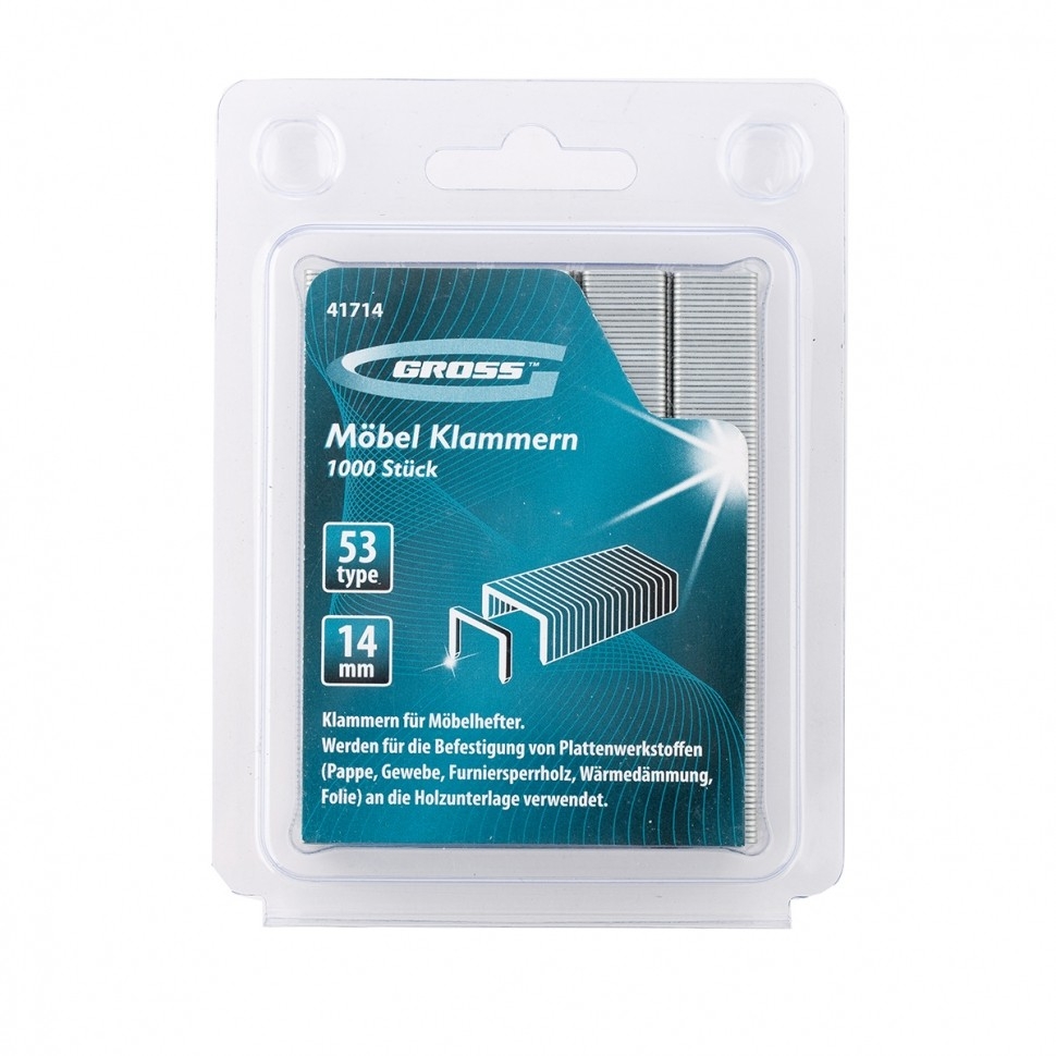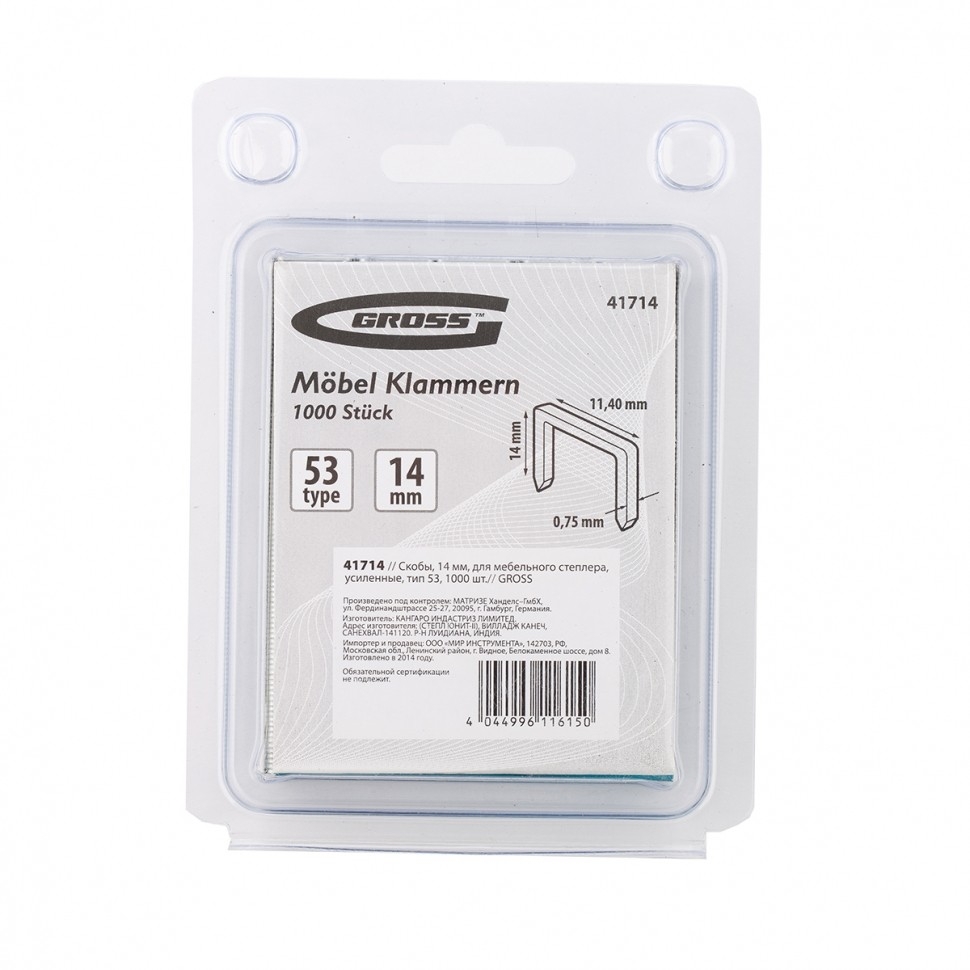 Скобы для степлера мебельного усиленные тип 53 14 мм 1000 шт Gross