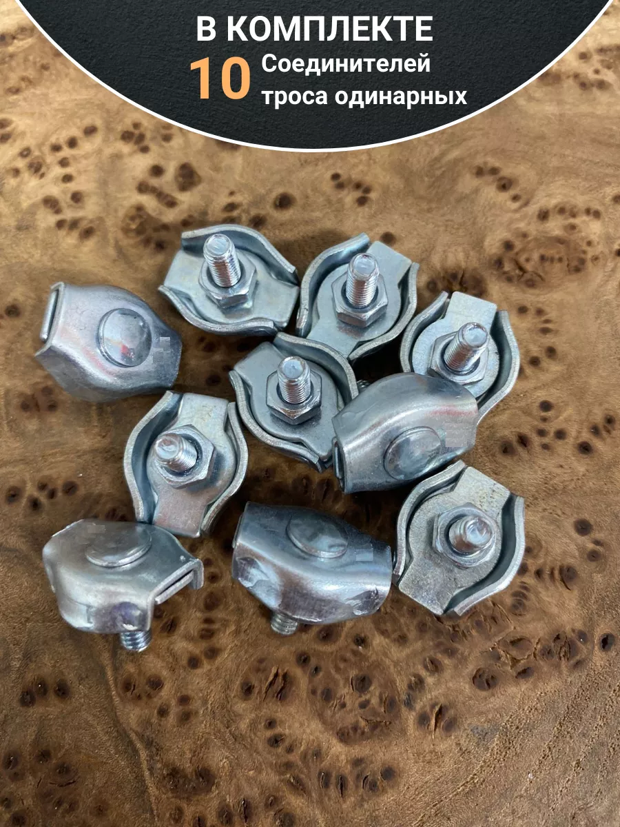 Соединитель троса одинарный 4 мм ОЦ,10 шт.