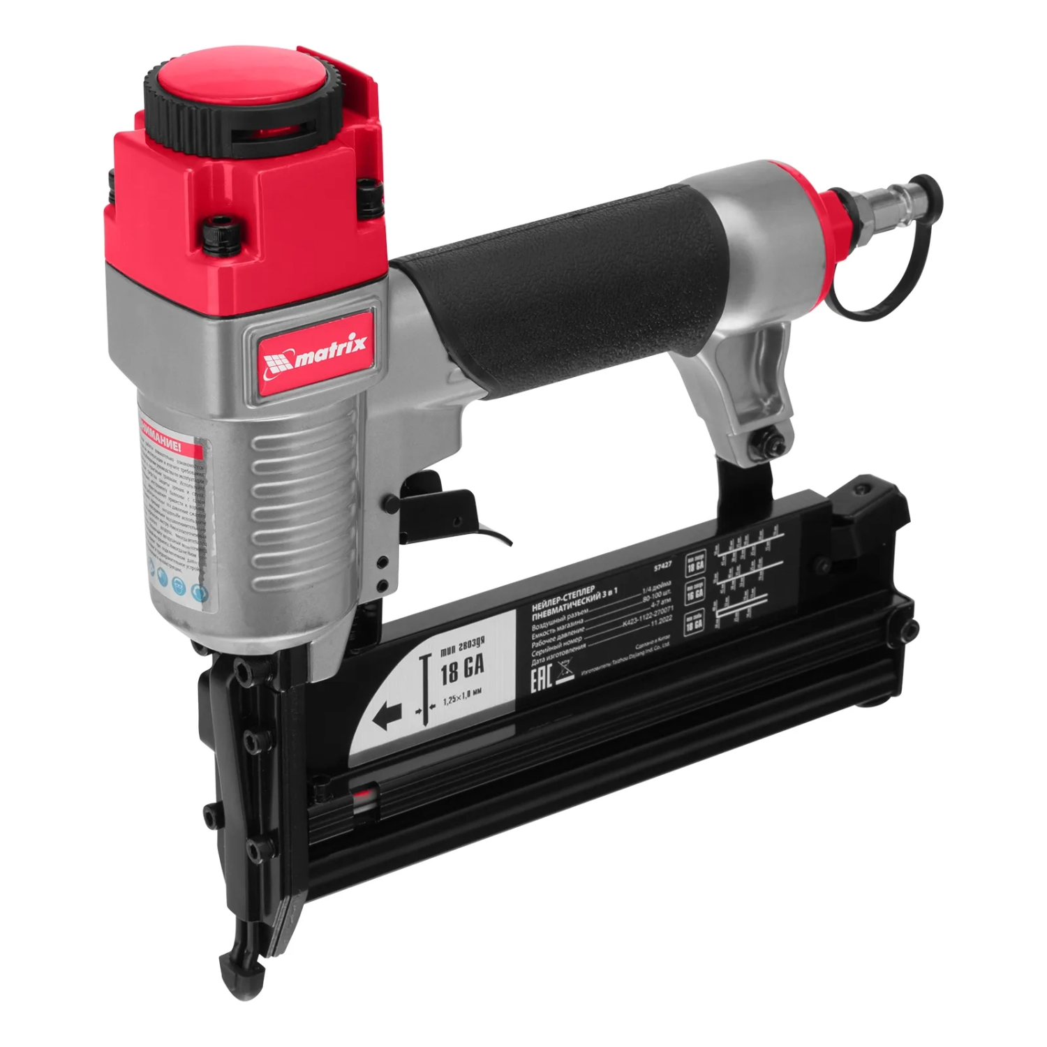 Степлер-нейлер пневматич. 3в1 регулир.глуб, гвозди 18GA, 16GA , скобы 18GA Matrix