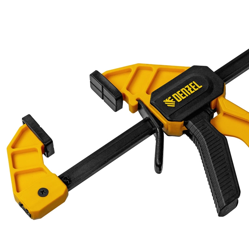 Струбцина F-образная быстрозажимная Denzel 20502 — это инструмент для надёжного фиксирования деталей при их обработке, склеивании и других работах. Ширина струбцины составляет 300 мм, глубина — 55 мм. Её нейлоновый корпус усилен, благодаря чему устойчив к ударам и падениям с небольшой высоты.