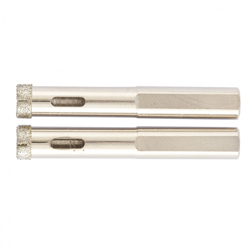 Универсальное алмазное сверло по керамограниту Matrix 726063 размером 6 х 67 мм, с 3-гранным хвостовиком, 2 шт. в упаковке, применяется для получения отверстий в стекле, плитке, кафеле. За счет высокой концентрации алмазов в режущем слое оно легко справляется со сверлением керамогранита. Сверло рассчитано на профессиональное использование с дрелями и шуруповертами, рекомендованная скорость составляет 350-700 об/мин. Водяное охлаждение в процессе работы значительно повышает срок службы оснастки. Высокий ресурс — сверло с усиленным корпусом и увеличенным алмазным слоем долго сохраняет рабочие свойства.