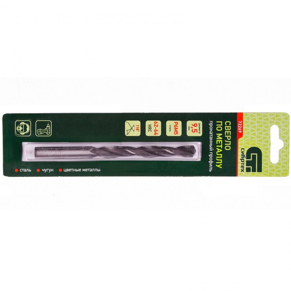 Сверло по металлу 9,5 мм Р6М5 Сибртех