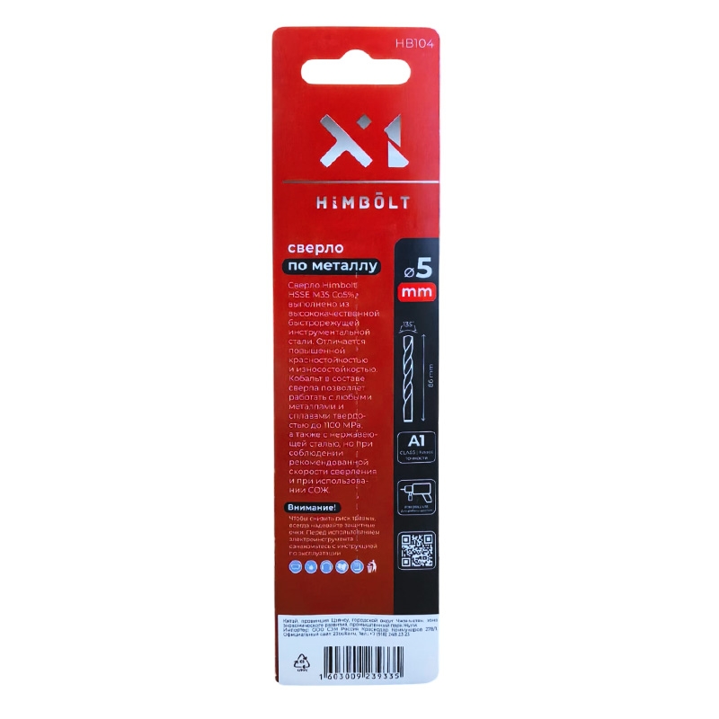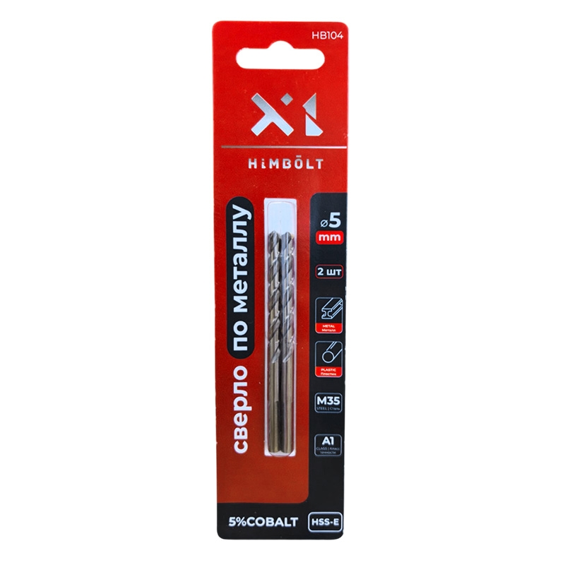 Сверло по металлу с кобальтом 5% P6M5K5 5,0 мм HIMBOLT 2 шт.блистер выполнено из высококачественной быстрорежущей инструментальной стали. Отличается повышенной красностойкостью и износостокойстью. Кобальт в составе сверла позволяет работать с любыми металлами и сплавами твердостью до 1100 МРА, а также с нержавеющей сталью, но при соблюдении рекомендованной скорости сверления и при использовании СОЖ.