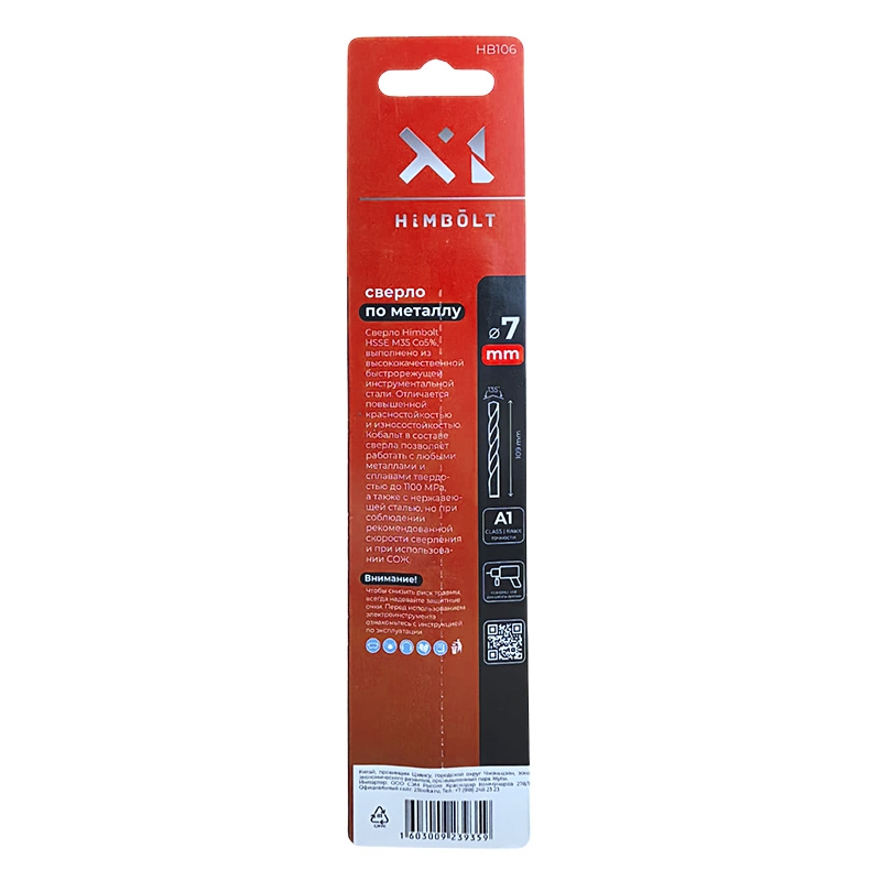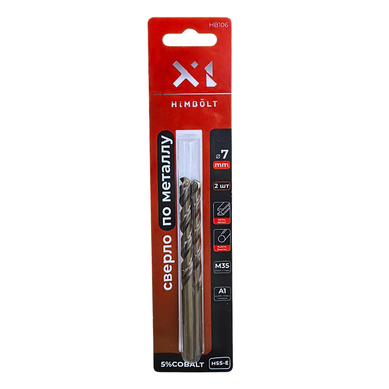 Сверло по металлу с кобальтом 5% P6M5K5 7,0 мм HIMBOLT 2 шт.блистер