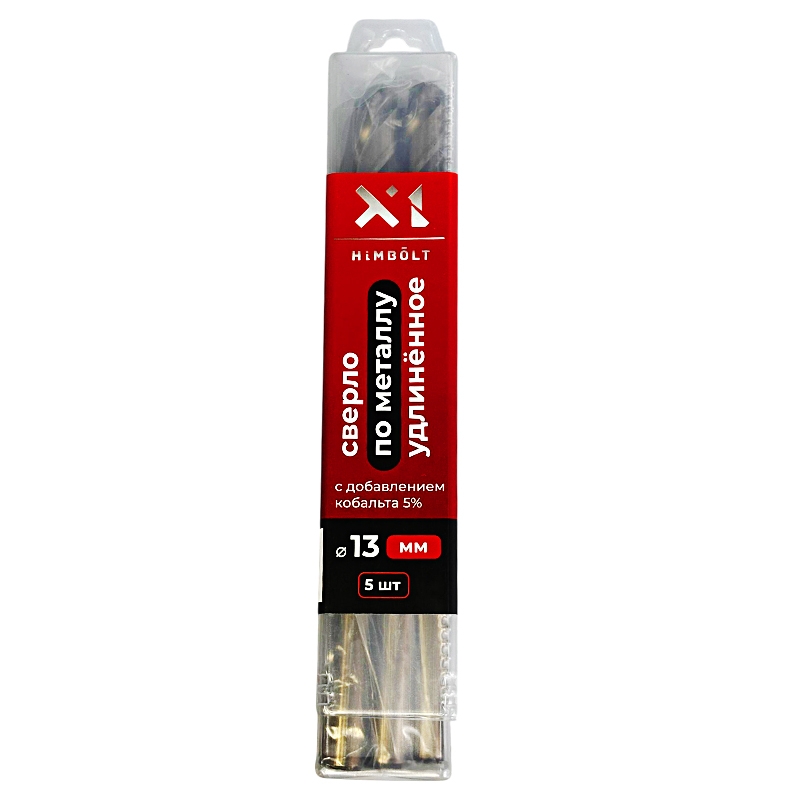 Сверло по металлу с кобальтом 5% P6M5K5 удлиненное 13,0 мм HIMBOLT 5 шт.пластиковый бокс