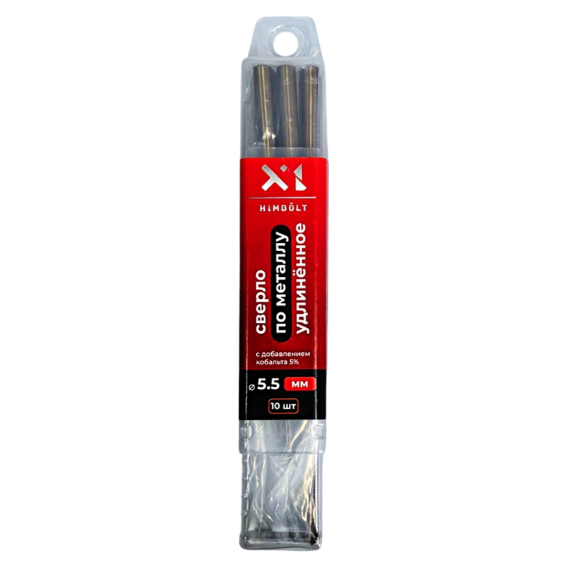 Сверло по металлу с кобальтом 5% P6M5K5 удлиненное 5,5 мм HIMBOLT 10 шт.пластиковый бокс