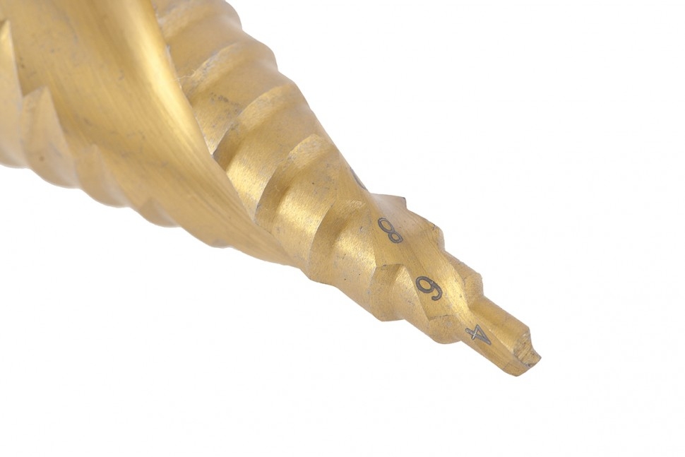 Ступенчатое сверло Matrix 72359 из стали HSS, со спиральным профилем и трехгранным хвостовиком, позволяет получать отверстия различного диаметра: 4-6-8-10-12-14-16-18-20-22-24-26-28-30-32 мм. Его можно использовать для работы с материалами толщиной до 5 мм: стали, цветных металлов, нержавейки и пластика. Отверстие выходит аккуратным, с ровными краями благодаря плавному ступенчатому переходу и возможности сразу снять фаску. Сверло выполнено из прочного и высококачественного материала — быстрорежущей стали HSS.Оснастка избавляет от необходимости покупки комплекта сверл.Нитридтитановое покрытие является гарантией высокой стойкости сверла к коррозии и износу. Для работы со сверлом не требуется выполнять предварительную подготовку, например, кернение или засверливание.За счет спирального профиля оснастка легко сверлит металл, что повышает эффективность работы. Трехгранный хвостовик исключает прокручивание оснастки в дрели.