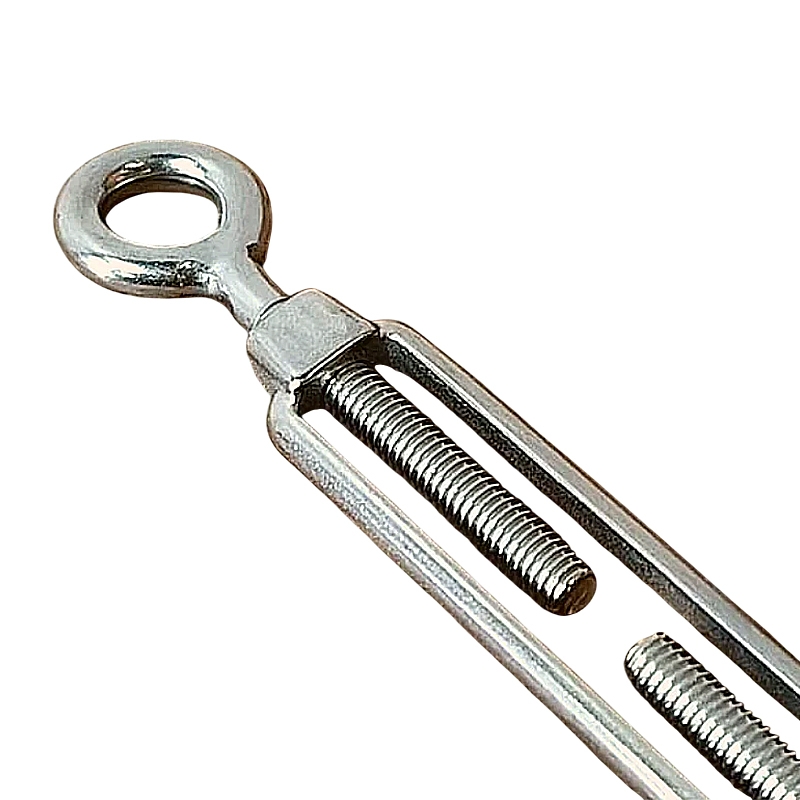 Талреп изготавливается из коррозиестойкой нержавеющей стали марки А4. Рабочие нагрузки рассчитываются вдоль оси талрепа, боковые нагрузки не допускаются. Высоколегированный сплав повышает прочностные характеристики изделия. Длина корпуса 110 мм. Диаметр кольца 11 мм.