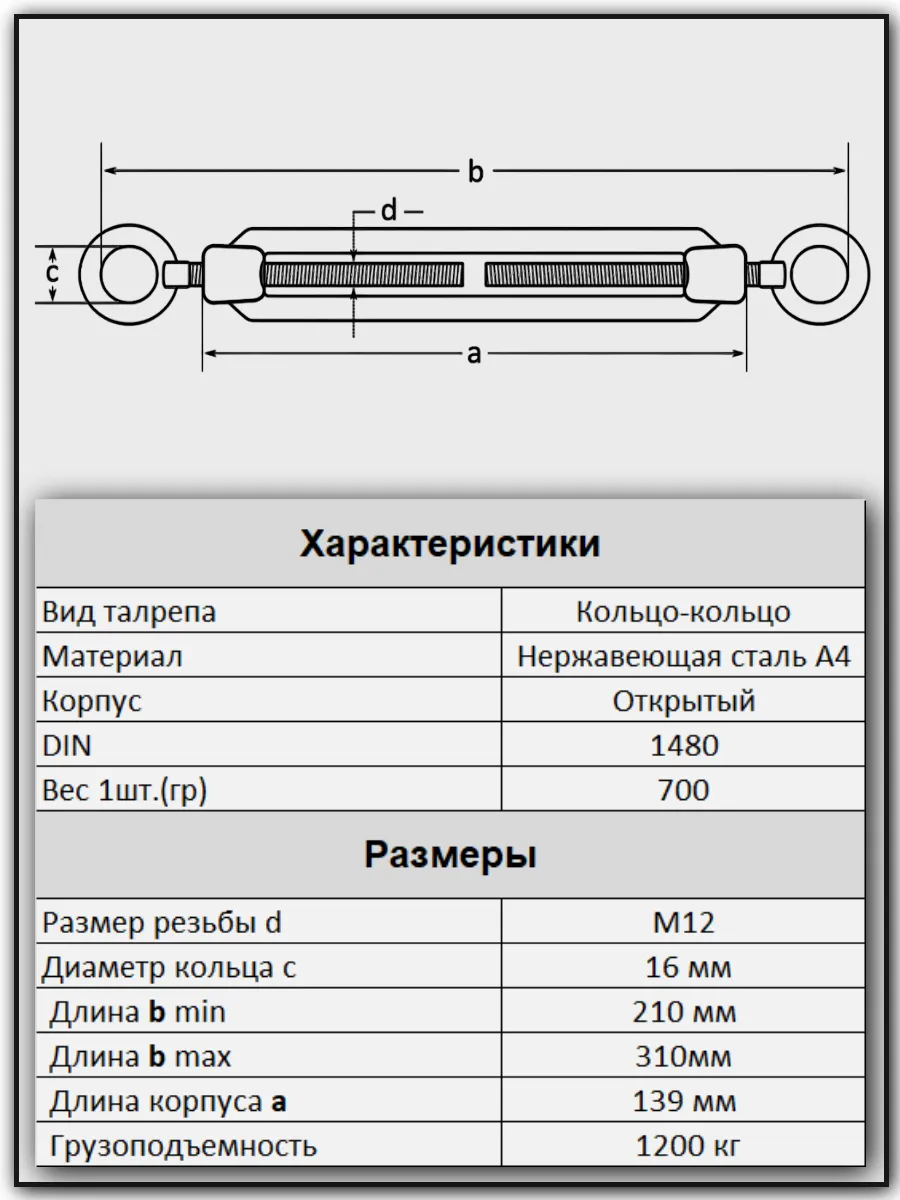 Талреп кольцо-кольцо нержавеющий А4 М12 DIN1480, 2 шт.