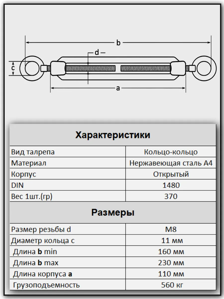 Талреп кольцо-кольцо нержавеющий А4 М8 DIN1480, 2 шт.