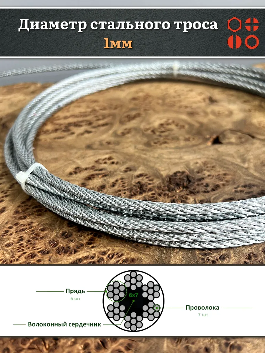 Трос стальной d1 оцинкованный без оплетки, 30 метров