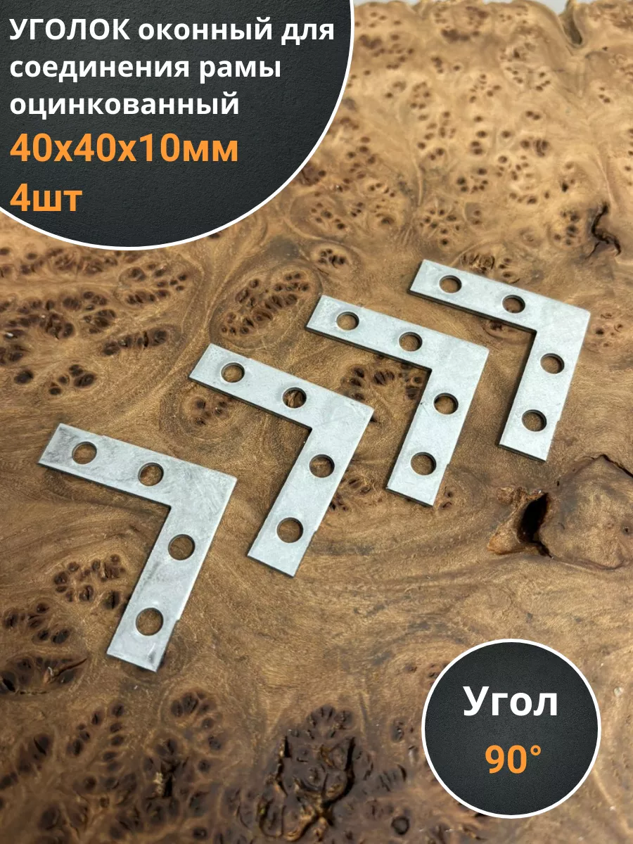 Уголок оконный 40х40х10 мм ОЦ для соединения рамы, 4 шт.