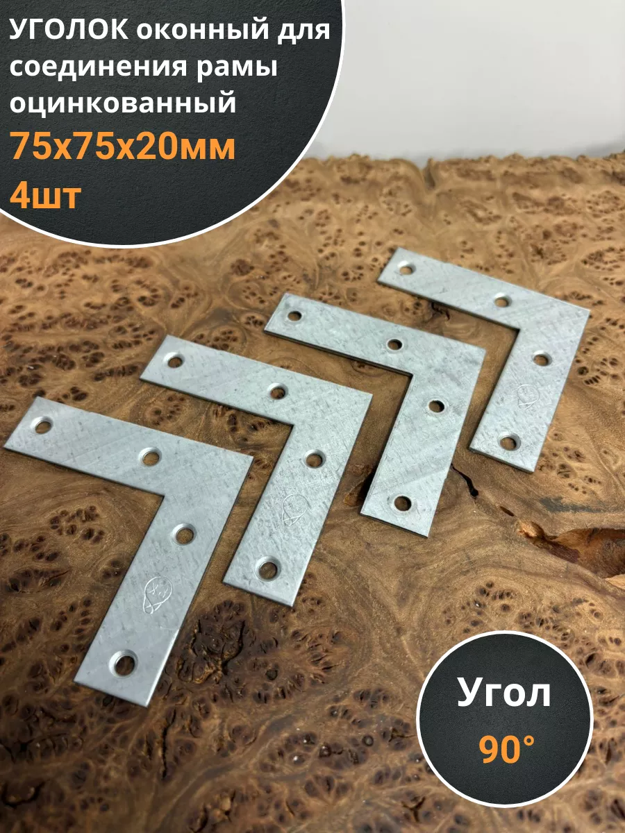 Уголок оконный 75х75х20 мм ОЦ для соединения рамы, 4 шт.