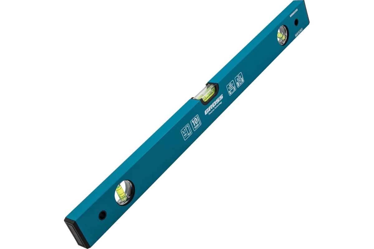 Усиленный алюминиевый уровень Gross 33632 длиной 1200 мм, с 3 глазками, поможет найти отклонения от горизонтали и вертикали для повышения точности работы. Этот простой, но незаменимый для любого мастера инструмент пригодится на стройке, при проведении ремонтных и монтажных работ. Уровень с глазком на 45 градусов позволяет измерить угол наклона, поэтому также пригодится при кровельных работах, проверке откосов и различных наклонных поверхностей. Противоударная конструкция — колбы из полистирола обладают высокой стойкостью к механическим воздействиям, поэтому инструмент выдерживает падения с небольшой высоты.