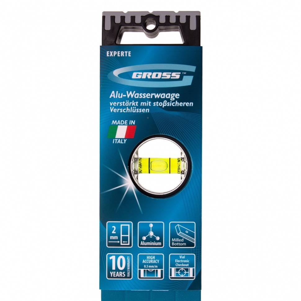 Уровень алюминиевый усиленный с ударопрочными заглушками 3 глазка рукоятки 1000 мм Gross