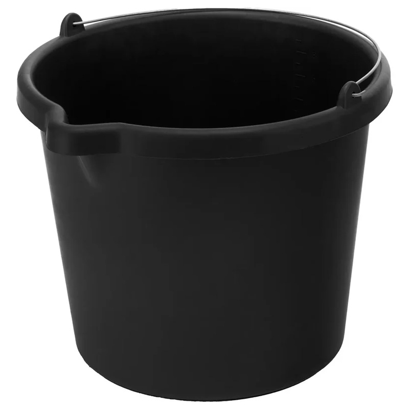 Прочная пластмасса устойчива к химическому воздействию смесей и растворов. Борты ведра усилены рёбрами жесткости.