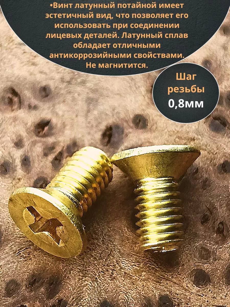 Винт 5х8 латунный потайной DIN965,10 шт