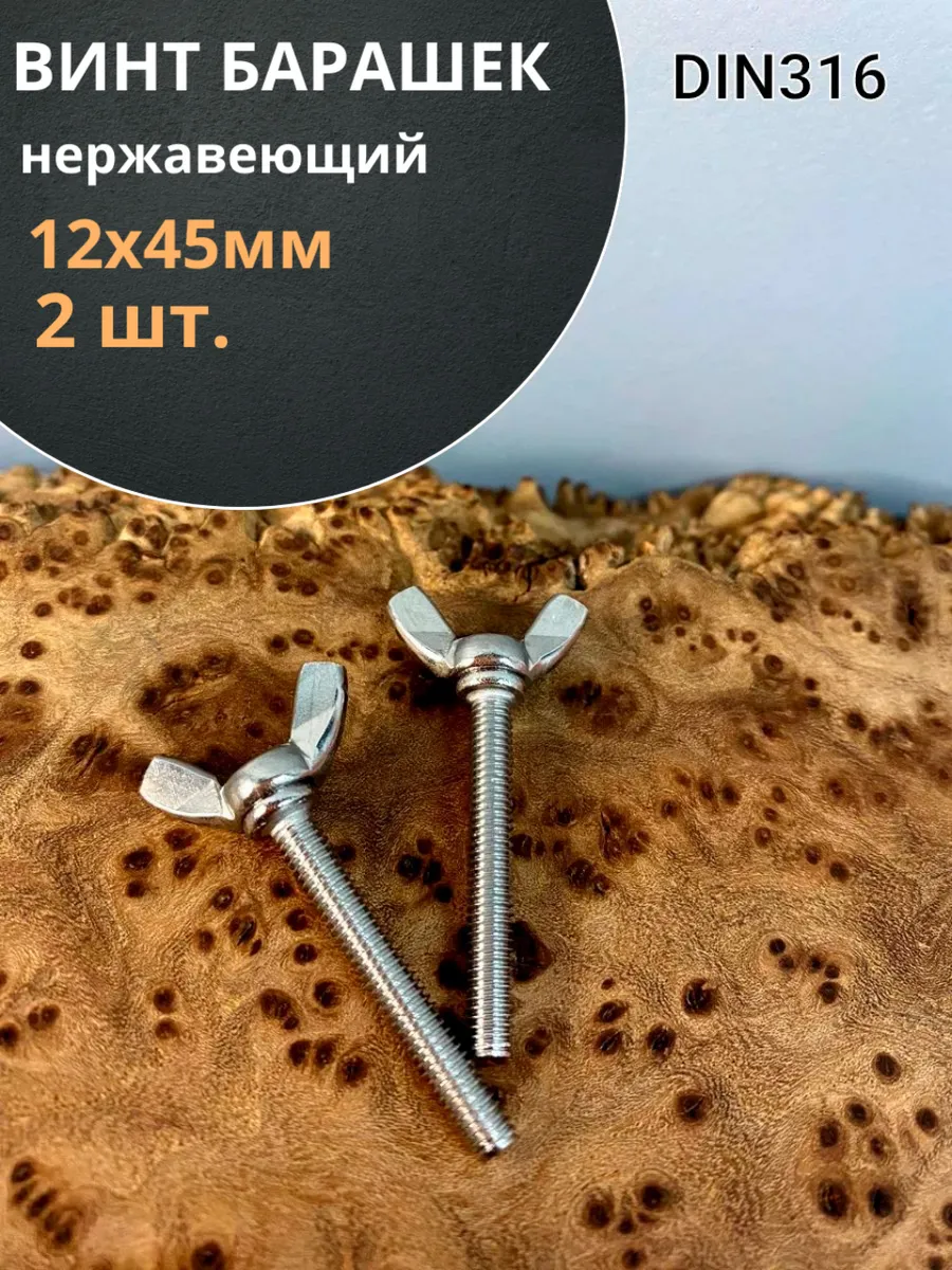 | Винт-барашек М12х45 мм ,нержавеющая сталь DIN 316 (5 шт.) | вб1245мфф5 | 1 шт. |