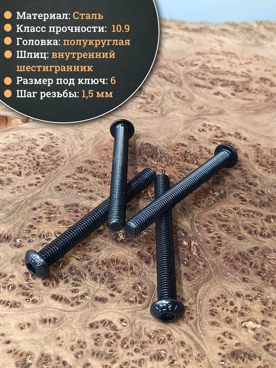 Винт чёрный М10х100 ISO 7380 под шестигранник к.п.10.9, 10 шт.