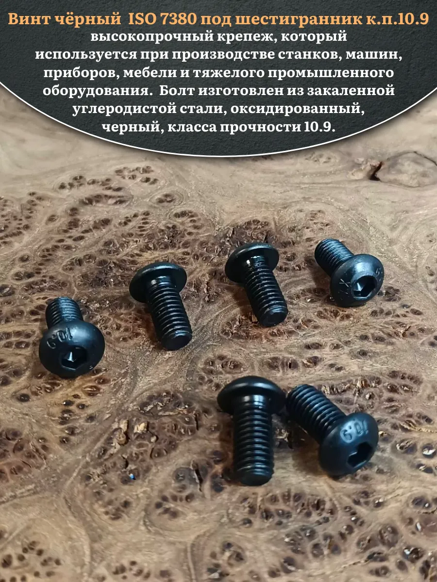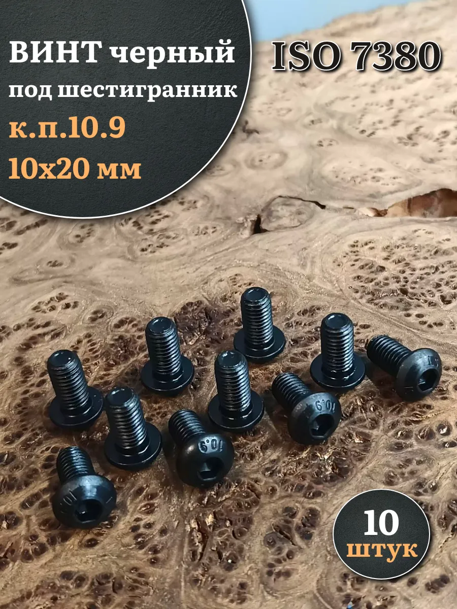 Винт чёрный М10х20 ISO 7380 под шестигранник к.п.10.9, 10 шт.
