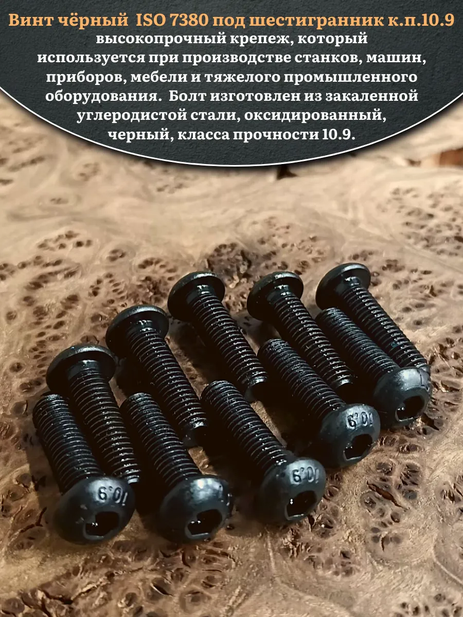 Винт чёрный М10х35 ISO 7380 под шестигранник к.п.10.9, 20 шт.