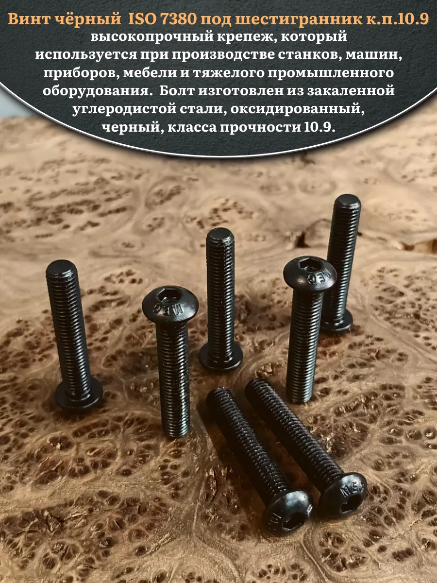 Винт чёрный М10х50 ISO 7380 под шестигранник к.п.10.9, 10 шт.