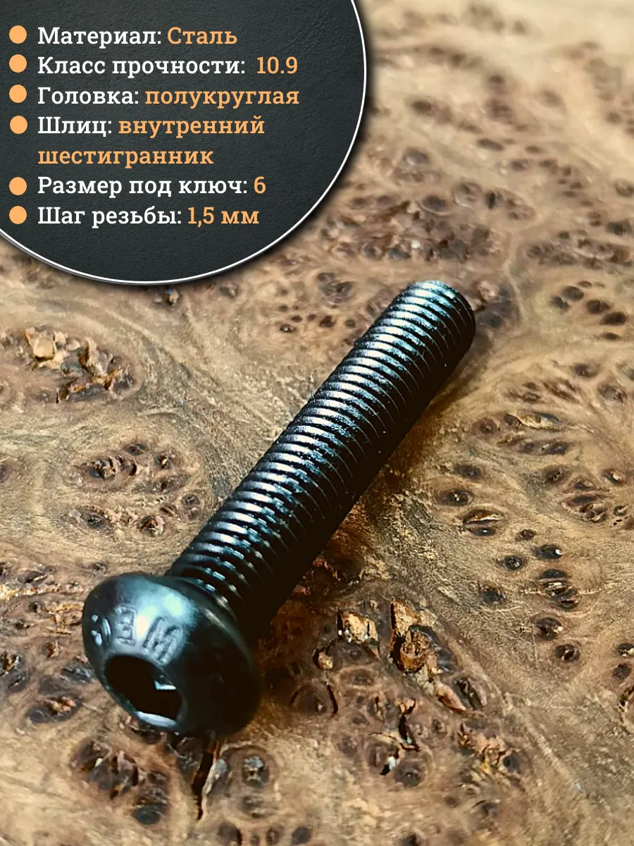 Винт чёрный М10х50 ISO 7380 под шестигранник к.п.10.9, 20 шт.