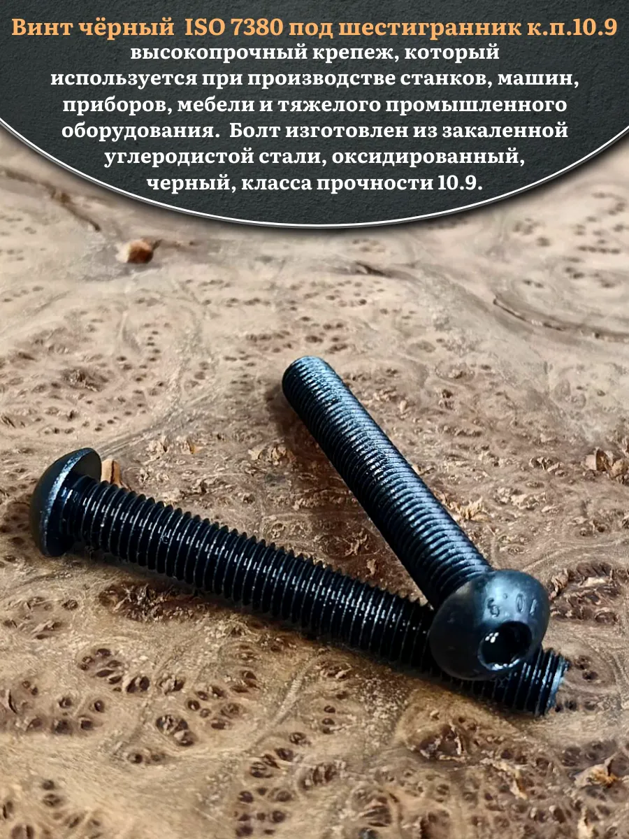 | Винт чёрный М10х75 ISO 7380 под шестигранник к.п.10.9, 20 шт. | 00-00006381ф20 | 1 шт. |
