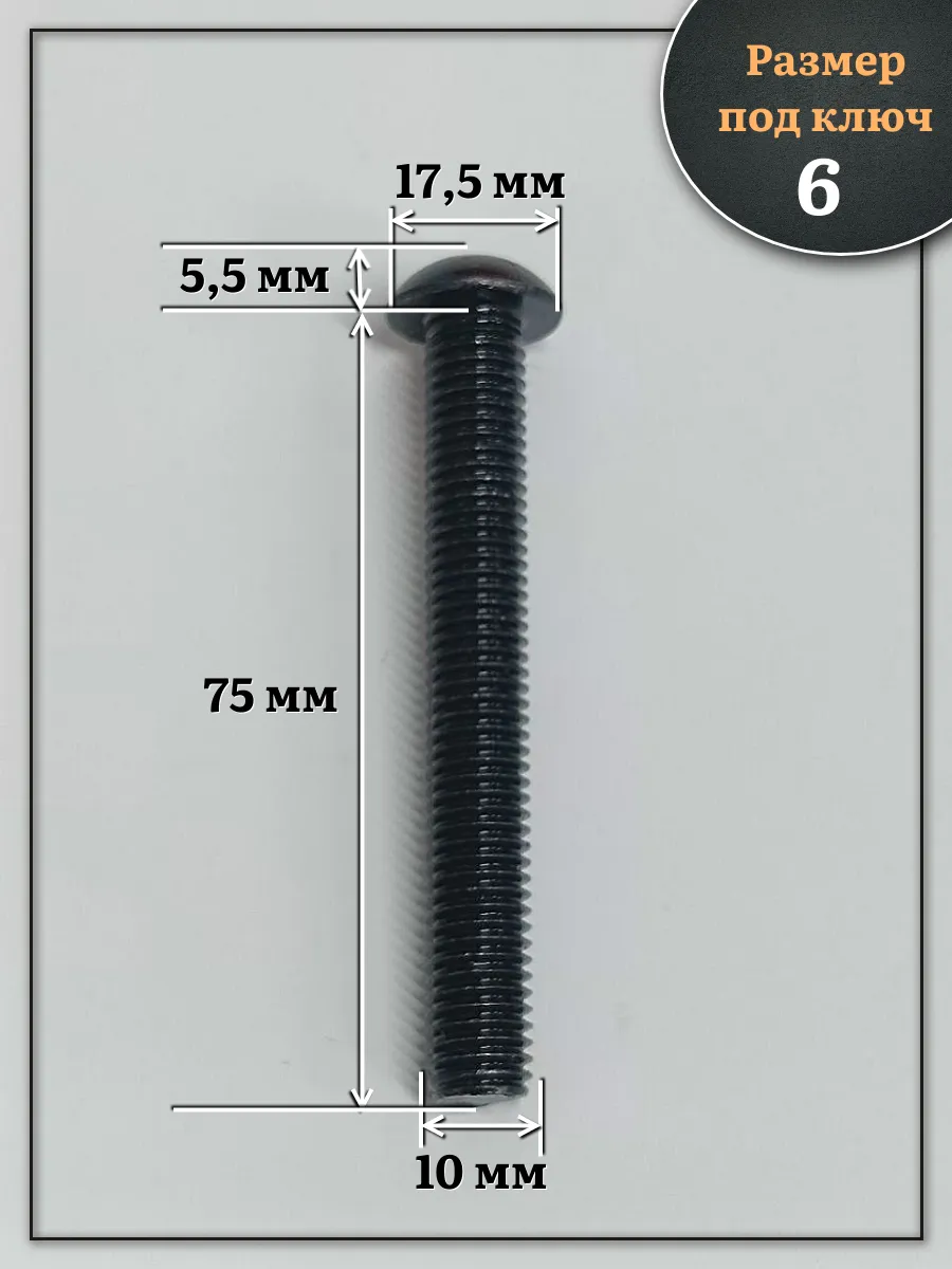 | Винт чёрный М10х75 ISO 7380 под шестигранник к.п.10.9, 10 шт. | 00-00006381ф10 | 1 шт. |