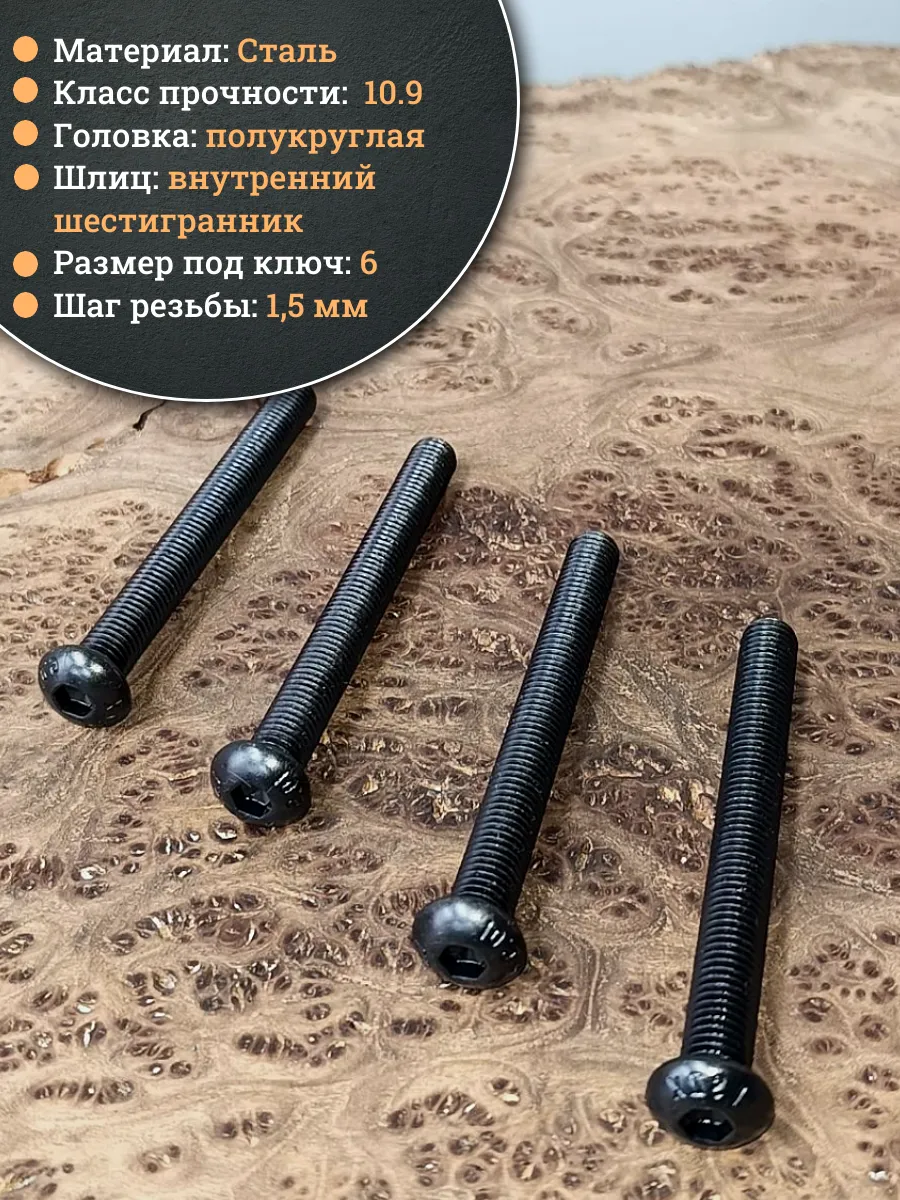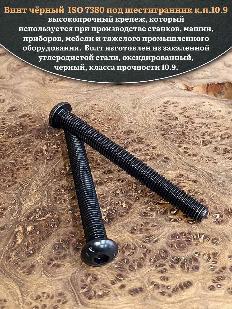 Винт чёрный М10х90 ISO 7380 под шестигранник к.п.10.9, 10 шт.