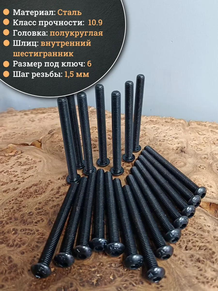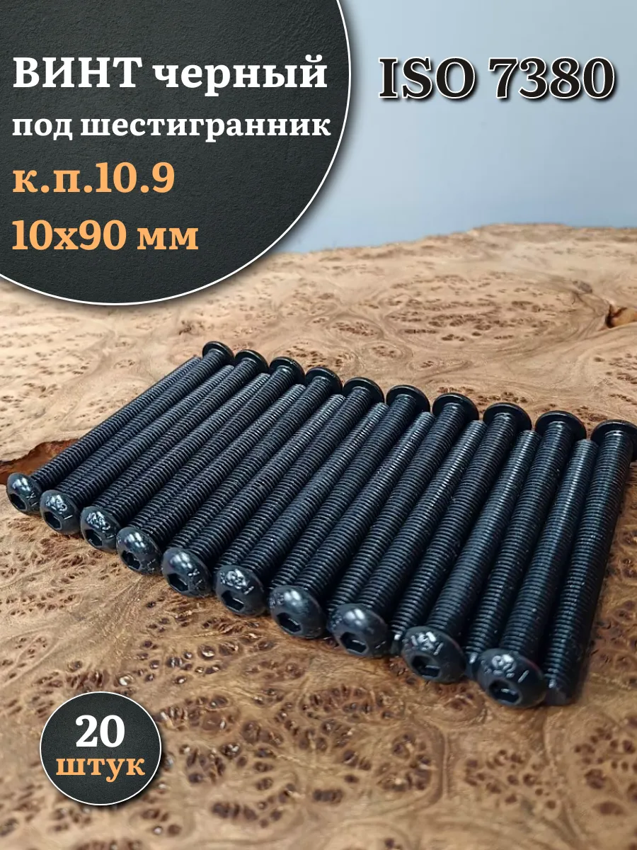 Винт чёрный М10х90 ISO 7380 под шестигранник к.п.10.9, 20 шт.