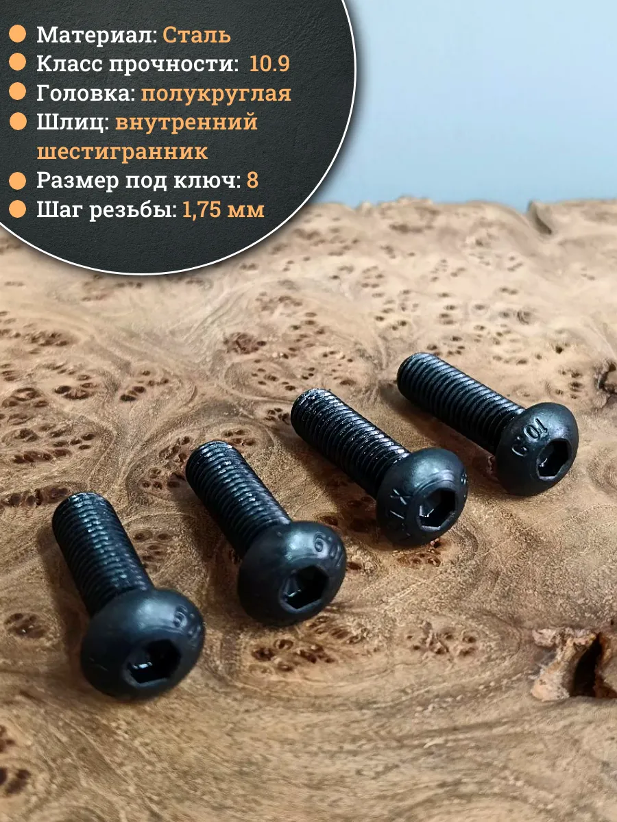 Винт чёрный М12х25 ISO 7380 под шестигранник к.п.10.9, 4 шт.