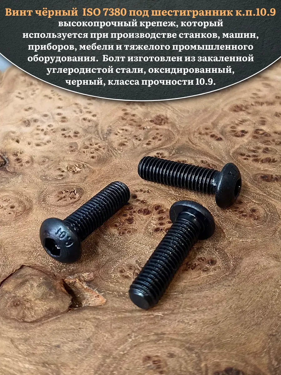 | Винт чёрный М12х30 ISO 7380 под шестигранник к.п.10.9, 10 шт. | 00-00001025ф10 | 1 шт. |