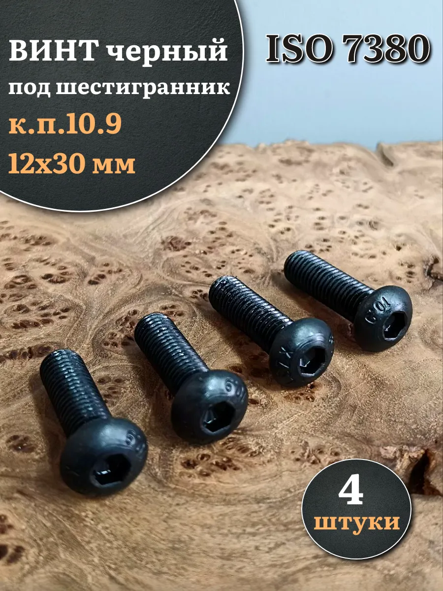 Винт чёрный М12х30 ISO 7380 под шестигранник к.п.10.9, 4 шт.