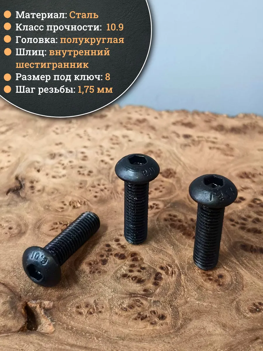 | Винт чёрный М12х35 ISO 7380 под шестигранник к.п.10.9, 20 шт. | 00-00003733ф20 | 1 шт. |