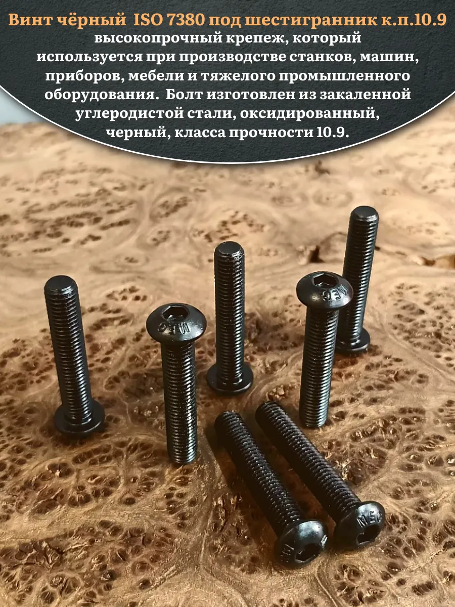 | Винт чёрный М12х50 ISO 7380 под шестигранник к.п.10.9, 10 шт. | 00-00003087ф10 | 1 шт. |