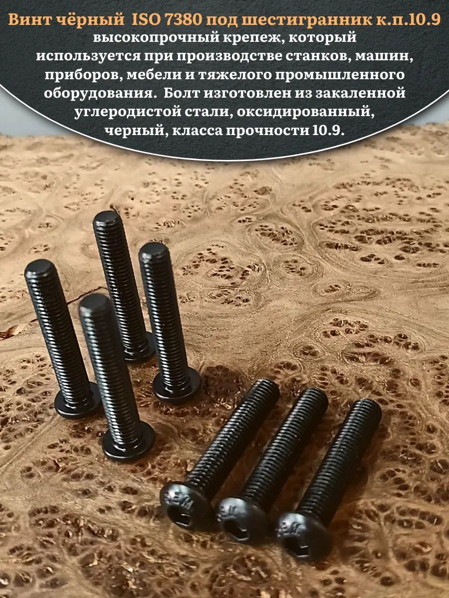 Винт чёрный М12х60 ISO 7380 под шестигранник к.п.10.9, 20 шт.