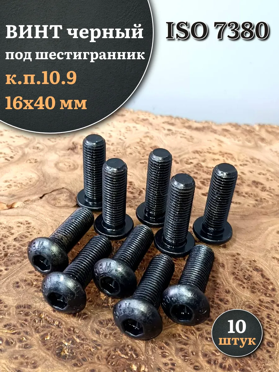 Винт чёрный М16х40 ISO 7380 под шестигранник к.п.10.9, 10 шт.