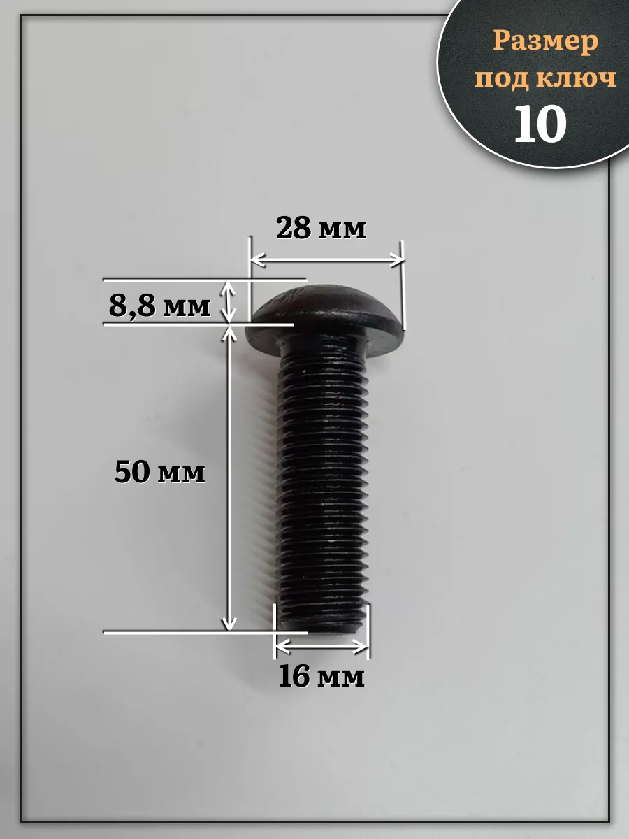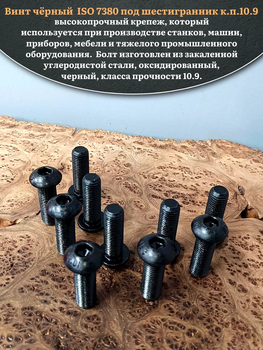 Винт чёрный М16х50 ISO 7380 под шестигранник к.п.10.9, 10 шт.