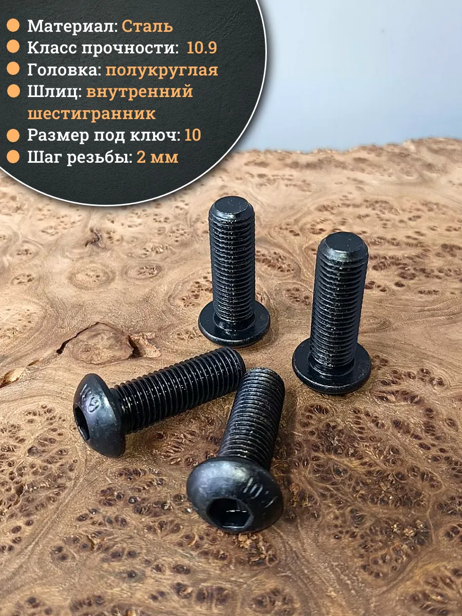 Винт чёрный М16х50 ISO 7380 под шестигранник к.п.10.9, 4 шт.