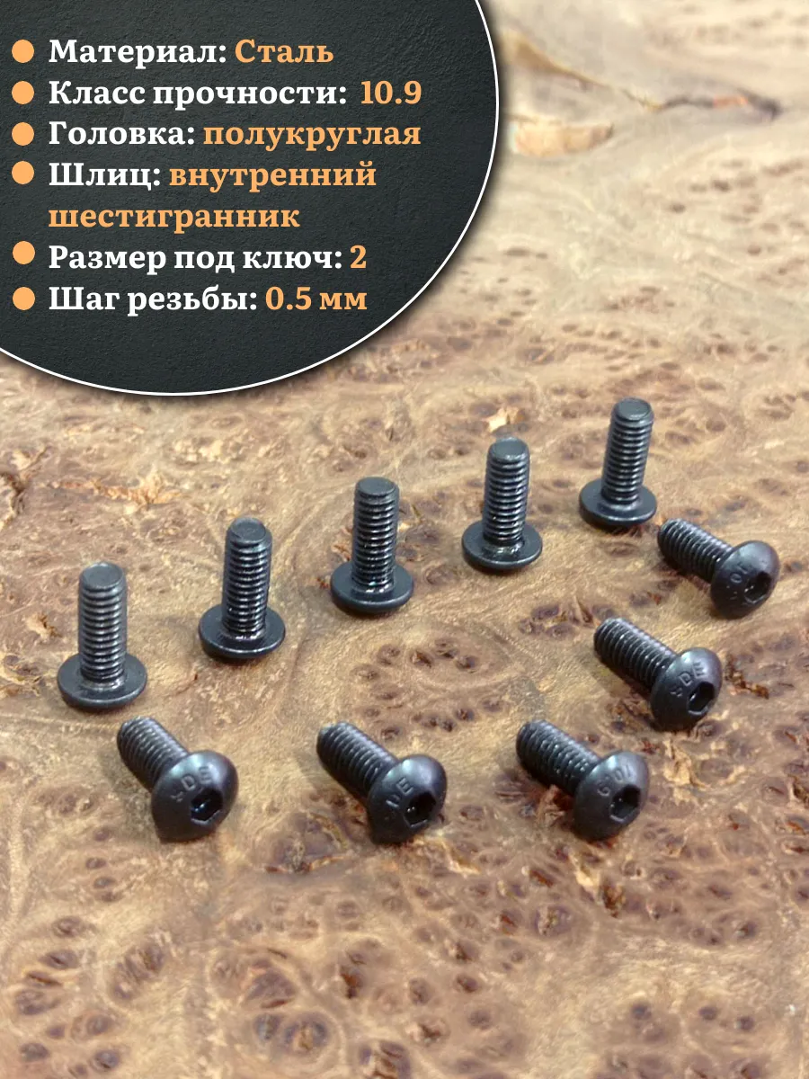 Винт чёрный М3х10 ISO 7380 под шестигранник к.п.10.9, 10 шт.