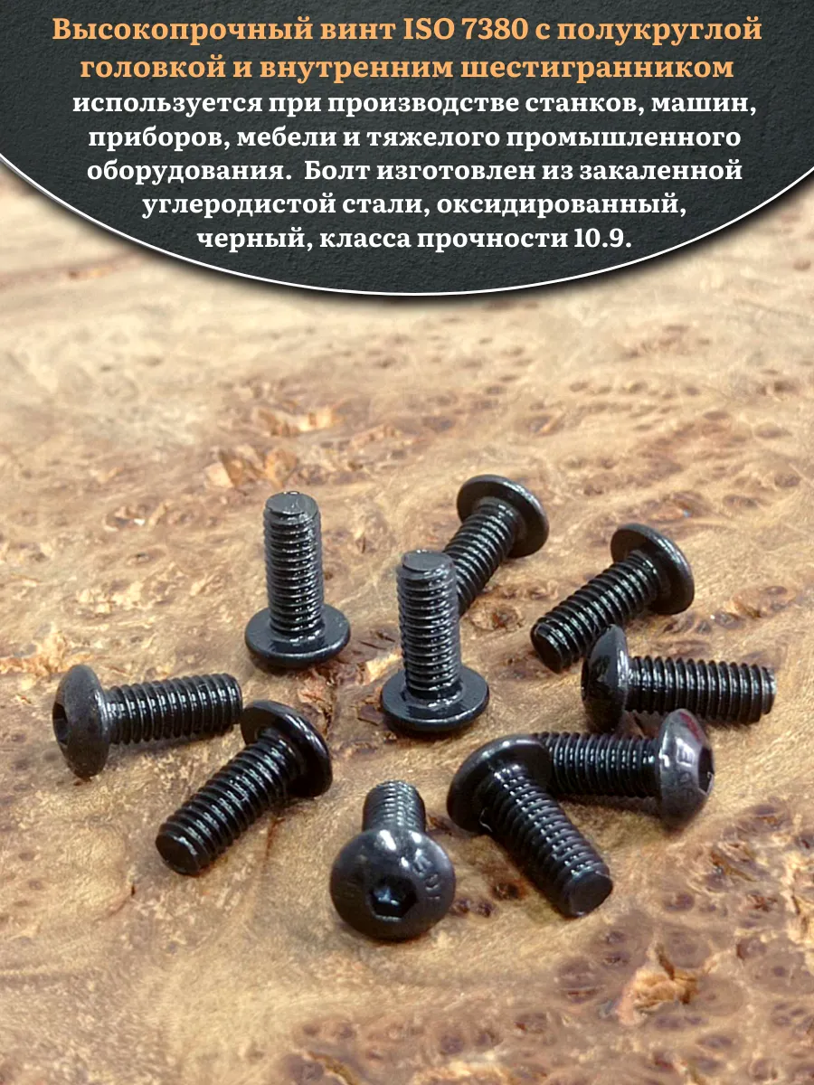 Винт чёрный М3х10 ISO 7380 под шестигранник к.п.10.9, 20 шт.