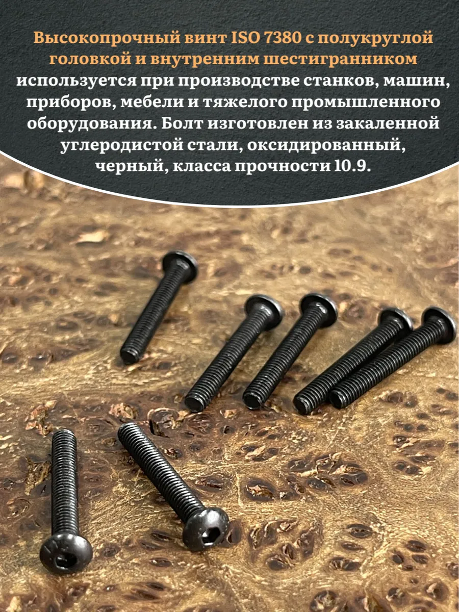 Винт чёрный М3х20 ISO 7380 под шестигранник к.п.10.9, 10 шт.