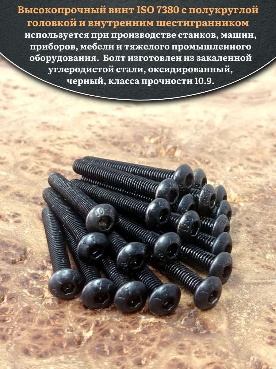 Винт чёрный М3х25 ISO 7380 под шестигранник к.п.10.9, 20 шт.
